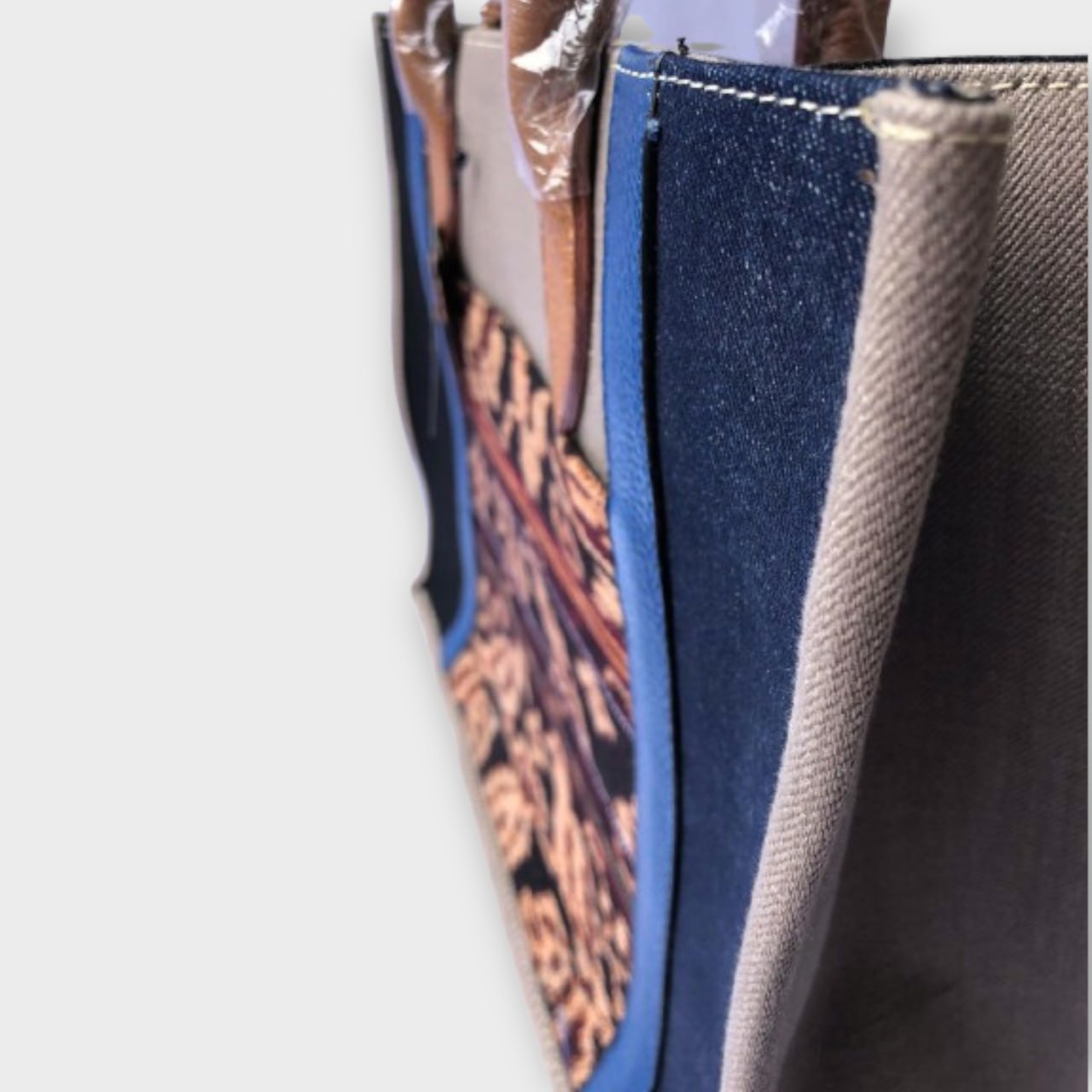 this bag made from tenun handmade fabric combine with denim and genuine cowhide leather
