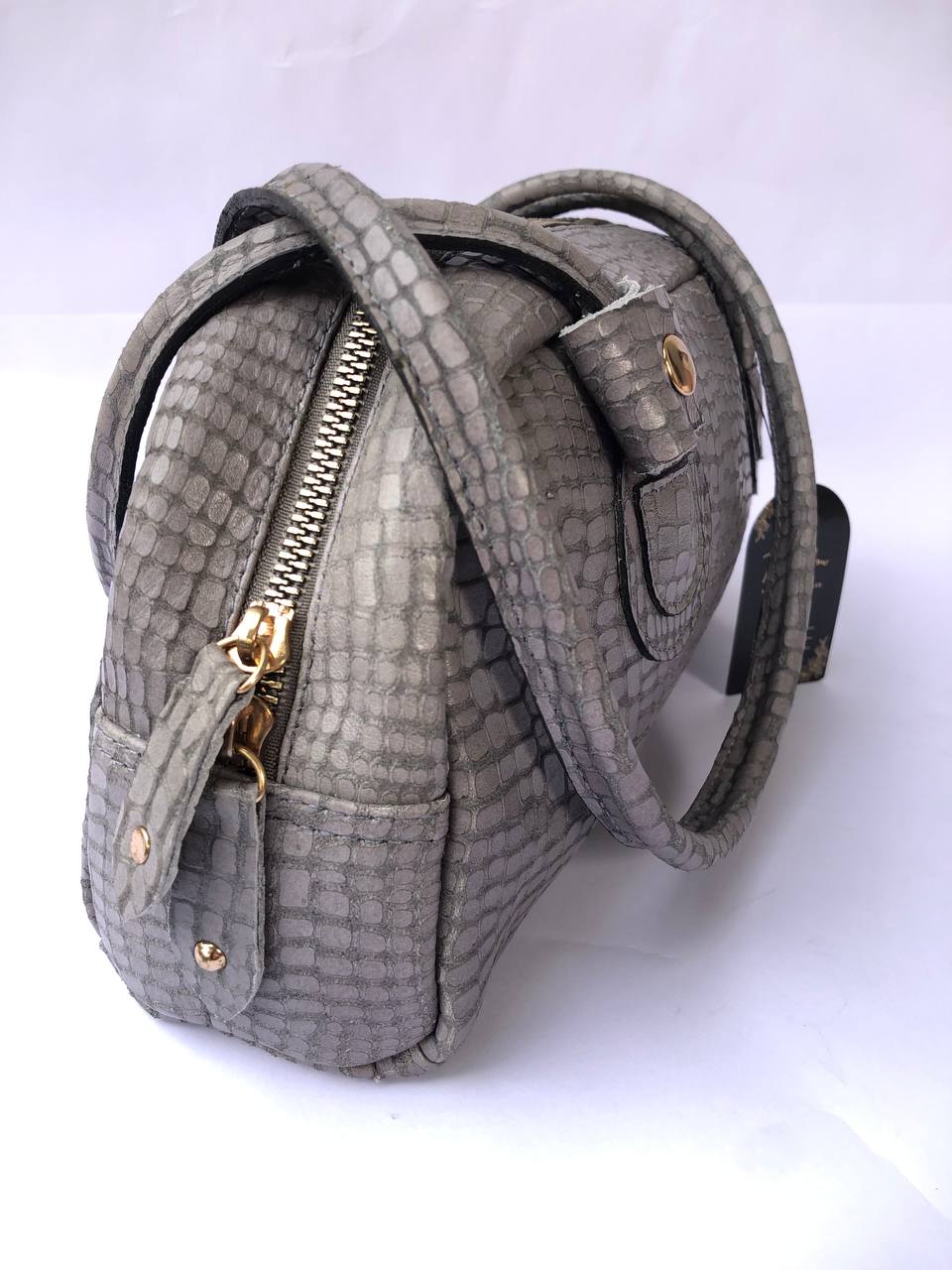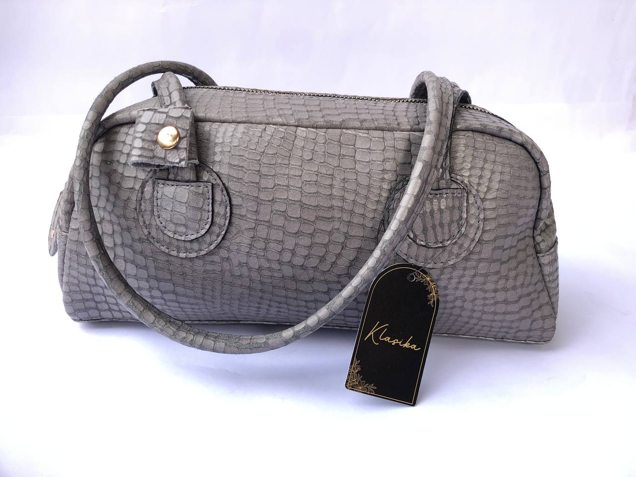 This bag made from embossed cowhide leather with snake pattern , has one main compartment with shoulder strap